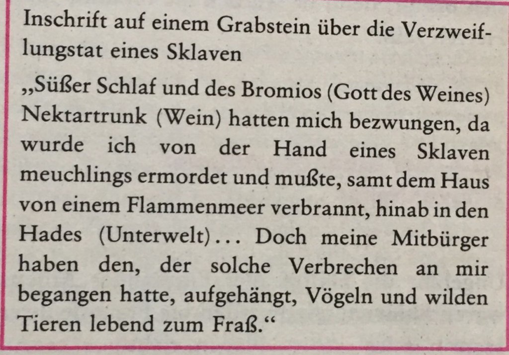 Ungefähr die Hälfte aller Einwohner Athens waren Sklaven. „Sie werden nie Freunde ihrer Herren sein“, hatte Platon richtig erkannt. Auch die armen Handwerker, Bauern, Tagelöhner und die Schicht der Fremden teilten nicht voll die Interessen der reichen Sklavenhalter. Wie konnten die reichen Sklavenhalter ihre Herrschaft sichern? Wie war es ihnen möglich, immer neue Sklavenmassen für die Athener Wirtschaft auszunutzen?