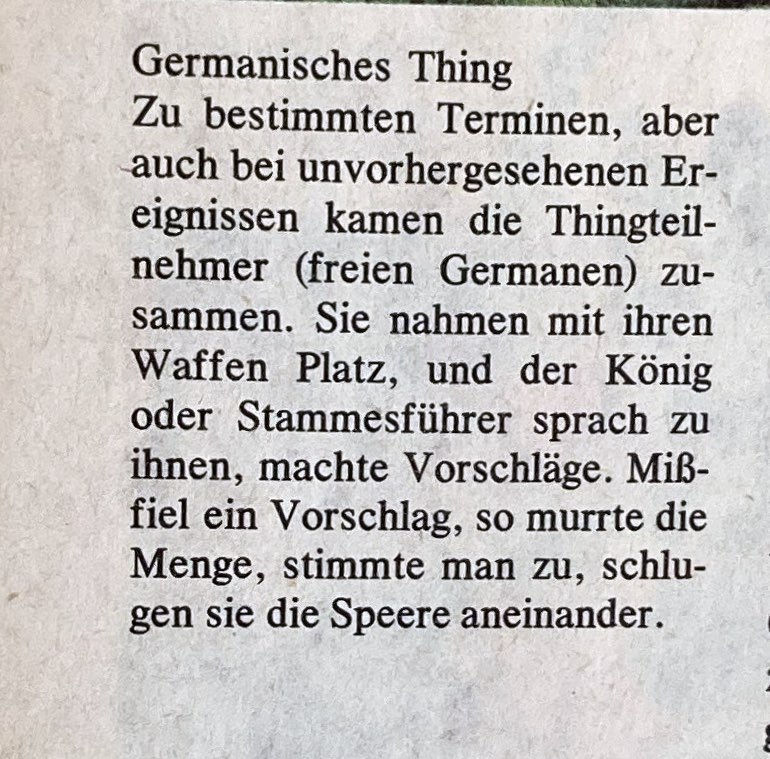 Noch versammelten sich alle wehrfähigen Freien beim Thing. In dieser Versammlung trafen sie sich, um Gericht zu halten, Kriegszüge zu beraten und zu beschließen und die Kriegsbeute aufzuteilen.