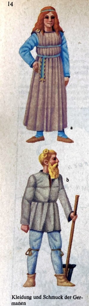 Die Römer nannten die Bewohner, die zu Beginn unserer Zeitrechnung nördlich der Alpen bis zur Küste der Nordsee und Ostsee und östlich des Rheins lebten, Germanen. Im 1. Jahrhundert v.u.Z. lebten die Germanen noch in der Urgesellschaft. ES gab Stämme und Sippen. Der Ackerbau war wenig entwickelt. Sie betrieben vorwiegend Viehzucht. Häufig suchten die Germanen neue Siedlungsgebiete. Das Land wurde jeweils für ein Jahr an die einzelnen Sippen verteilt. Die Frauen waren sehr geachtet.