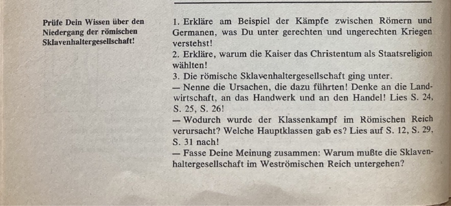 Aufgaben aus dem Geschichtsbuch der DDR: