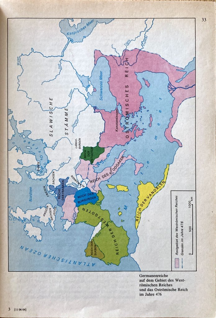 Germanenreiche auf dem Gebiet des Weströmischen Reiches und das Oströmische Reich im Jahre 476